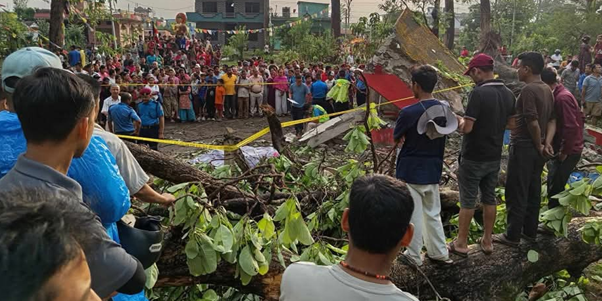 सुनवल नगरपालिका वडा–७ ज्यामिरेस्थित प्रतीक्षालयमा प्रतीक्षालयमा बसिरहेका स्थानीयलाई रूख ढलेर च्यापेको थियो । घटनामा सुनवल–७ की ३० बर्सिया मिरा बयम्बु र ४० वर्षीय दुर्गाबहादुर पुनको घटनास्थलमै मृत्यु भएको इलाका प्रहरी कार्यालय, सुनवलका प्रमुख सन्तोष पौडेलले जानकारी दिए । सोही वडाका ४० बर्सिया नरमती परियार, ५१ बर्सिया दुर्गेश्वरा खाम्चा र २२ वर्षीय अनिल थापा घाइते भएका छन् ।