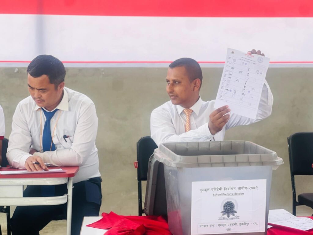 दाङ । गुरुकुल एकेडेमी लमही र गुरुकुल एकेडेमी तुलसीपुरमा पहिलो पटक विधिवत निर्वाचन प्रक्रियाबाट विद्यालय स्तरीय विद्यार्थी नेतृत्व चयन गरिएको छ ।