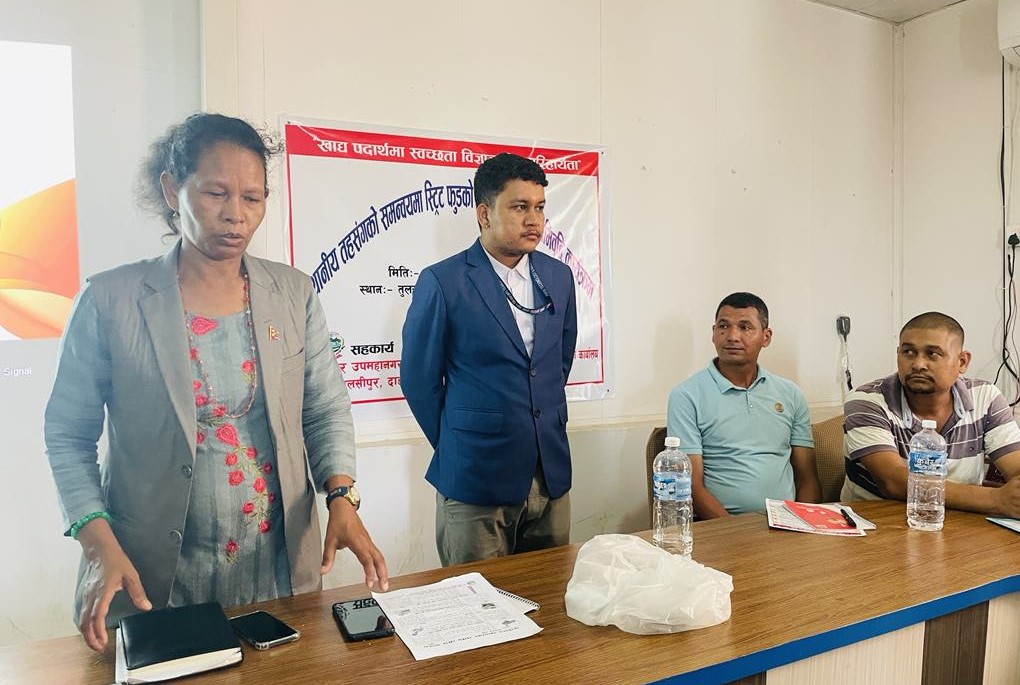 खाद्य प्रविधी तथा गुण नियन्त्रण डिभिजन कार्यालय तुलसीपुरको आयोजना तथा तुलसीपुर उपमहानगरको सहकार्यमा कार्यक्रम भएको हो । उपभोक्ता हित सरक्षण शाखा प्रमुख रेखा शर्माको अध्यक्षता एवं उपप्रमुख स्यानी चौधरीको प्रमुख आतिथ्यतामा कार्यक्रम भएको हो ॥