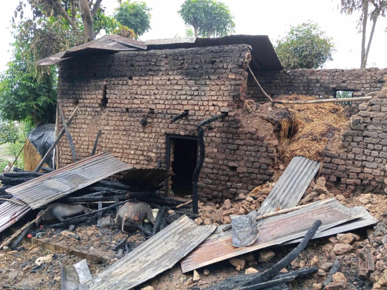 तुलसीपुर उपमहानगरपालिका–७ घुसेरी निवासी सागर पौडेलको गोठमा चट्याङ लागेर आगलागी हुँदा गोठमा बाँधिएका २ वटा भैंसी, ३ वटा खसी, १ वटा बाख्रा र १० वटा कुखुरा जलेर मरेको ईलाका प्रहरी कार्यालय तुलसीपुरका प्रवक्ता प्रहरी निरीक्षक सुर्य रानाले जानकारी दिनुभयो ।