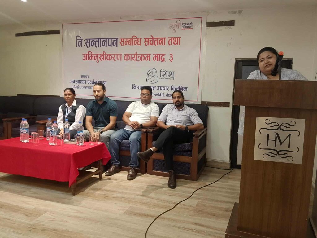 शिशु निसन्तानपन उपचार क्लिनिकका प्रमुख अविनाश भण्डारीको अध्यक्षता तथा जनस्वास्थ्य प्रवद्र्धन शाखा प्रमुख राधा पौडेलको प्रमुख आतिथ्यतामा सम्पन्न कार्यक्रममा निःसन्तानपनका विषयमा समाजमा सचेतना फैलाउनुपर्नेमा जोड दिइएको थियो।
