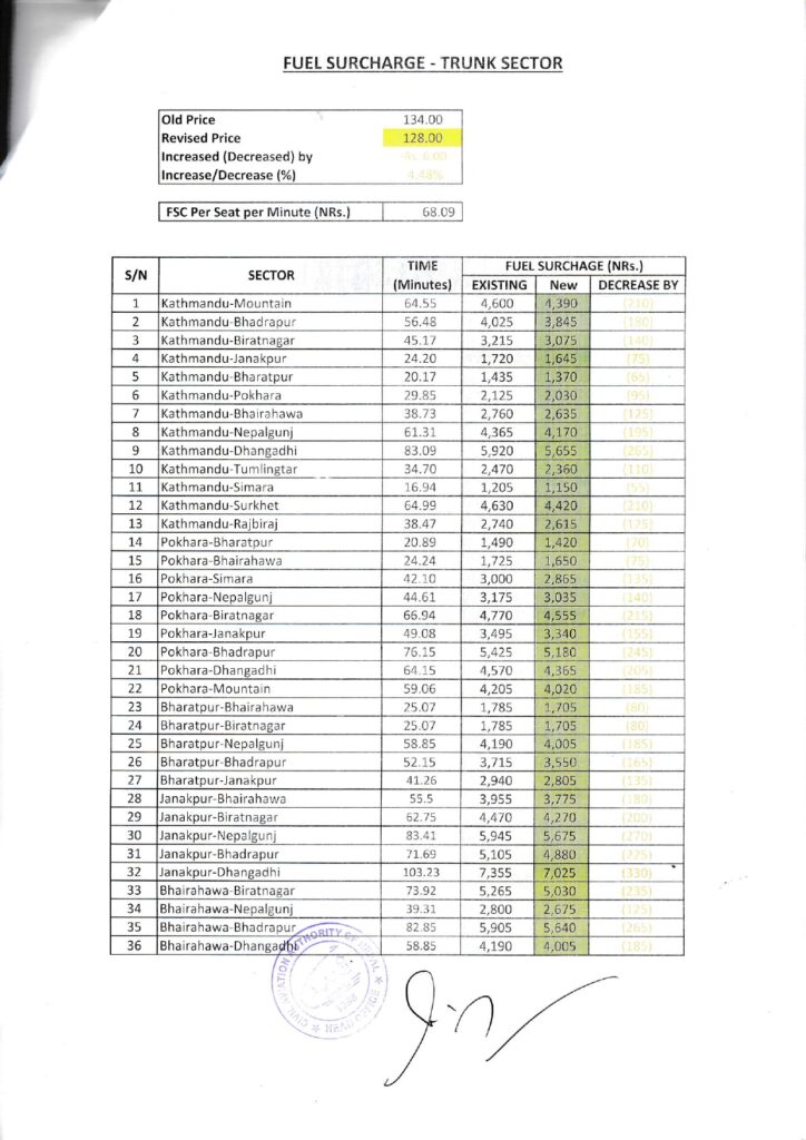 पोखरा, भैरहवा, जनकपुर, सिमरा, विराटनगर, नेपालगन्ज लगायत विमानस्थलबाट हुने आन्तरिक उडानका भाडा घटाइएको छ ।