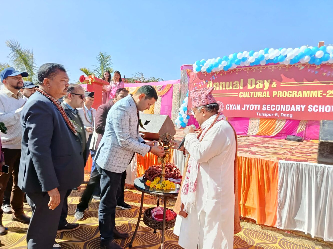 दाङ । दाङको तुलसीपुरस्थित ज्ञानज्योति सेकेन्डरी स्कुलले बिहीबार भव्यताका साथ आफ्नो ‘वार्षिक सँंस्कृति कार्यक्रम’ गरेको छ । ज्ञानज्योति एजुकेशन फाउण्डेसनका सिइओ सुरेन्द्र जिसीको अध्यक्षता तथा तुलसीपुर उपमहानगरपालिकाका शिक्षा शाखा प्रमुख चक्र भण्डारीको प्रमुख आतिथ्यतामा कार्यक्रम भएको हो ।