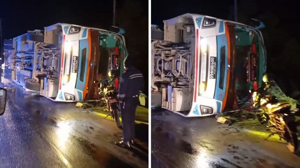 लुम्बिनी प्रदेश ०२–००१ ख ०४६० नम्बरको नाइट बस आज बिहान करिब ३ बजेर १० मिनेटमा आफैं अनियन्त्रित भई घुमाउने भन्ने स्थानमा पल्टिएको हो ।