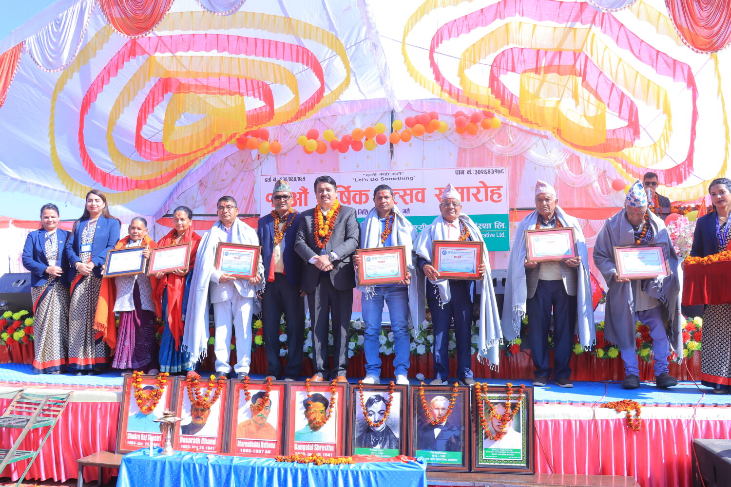 जसमा जेष्ठ सदस्य तुलसीपुर–१८ का ८५ वर्षका रामबहादुर डाँगी, संस्थाले व्यवसाय सुरु गर्दा आफ्‌नो जग्गा संस्थाको तर्फबाट धितो राख्न दिने सदस्यहरु तुलसीपुर–७ गणेशपुरका पवा कुमारी भण्डारी, पूर्व उपाध्यक्ष तुलसीपुर–४ रक्षाचौरका ढुण्डीराज खनाल, पूर्व सल्लाहकार तुलसीपुर–४ रक्षाचौरका स्वर्गिय मनिराम खनाल, पूर्व सञ्चालक तुलसीपुर–७ गणेशपुरका कमला जीसी, पूर्व सञ्चालक तुलसीपुर–७ झुमरेका उत्तम प्रसाद भण्डारी, तुलसीपुर–७ मोतिपुरका हुताराम भण्डारीलाई सम्मान गरेको संस्थाका प्रमुख कार्यकारी अधिकृत जनक भण्डारीले जानकारी दिनुभयो ।