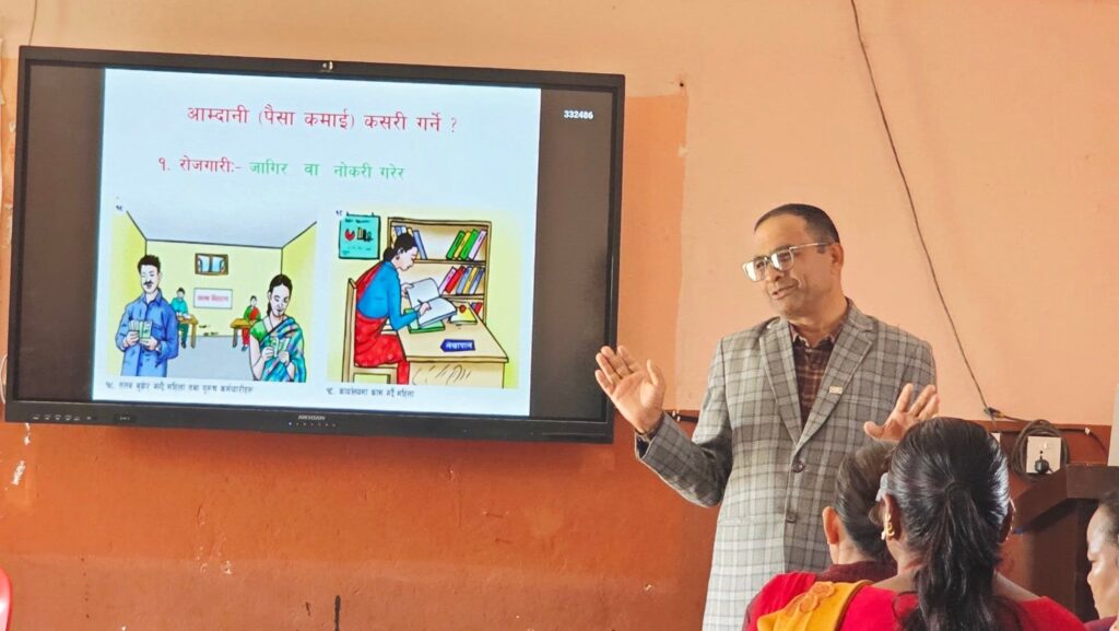 संस्थाका अध्यक्ष शुक्रराज भण्डारीले तालिममा सहभागीहरूलाई आम्दानी, खर्च व्यवस्थापन, बचत र लगानीका विषयमा प्रशिक्षण प्रशिक्षण गर्नु भएको हो । सदस्यहरुलाई आर्थिक रुपमा कसरी सक्षम हुने, बचत कसरी गर्ने, बचतका फाईदा,व्यक्तिगत बजेट व्यवस्थापन, लगानी रणनीतिहरू र ऋण व्यवस्थापनका बारेमा जानकारी गराउनुभयो ।