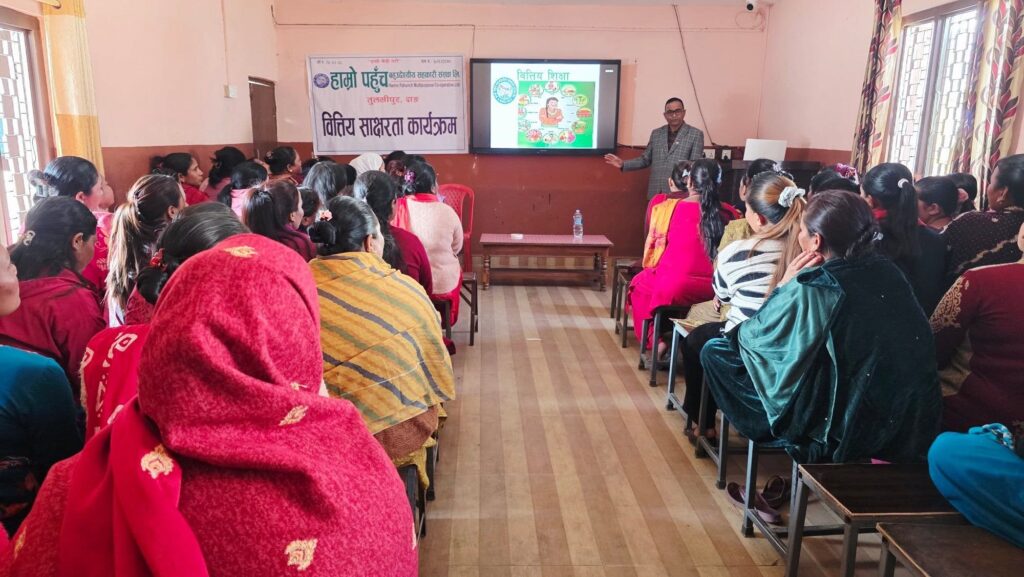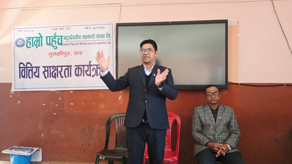 तुलसीपुर । दाङको तुलसीपुर–७ झुमरेमा रहेको हाम्रो पहुँच बहुउद्देश्यीय सहकारी संस्था लिमिटेडले शेयर सदस्यहरुलाई वित्तीय साक्षरता तालिम प्रदान गरेको छ ।