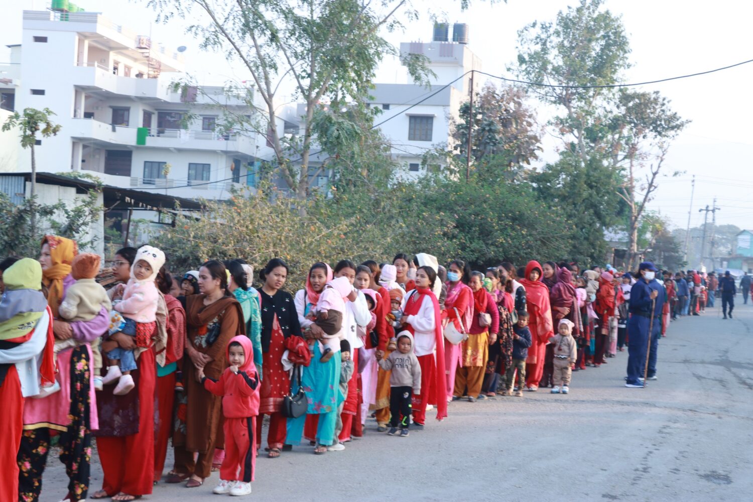 स्वर्णविन्दु खुवाउन आज विहान साढे ४ बजेदेखि पश्चिम दाङका विभिन्न क्षेत्रसहित बाँकेबाट पनि अभिभावकहरु बालबालिका बोकेर लाइनमा बसेका थिए । स्वर्णविन्दु बालबालिकाहरुलाई महिनामा एक पटक मात्र खुवाउने गरिन्छ ।