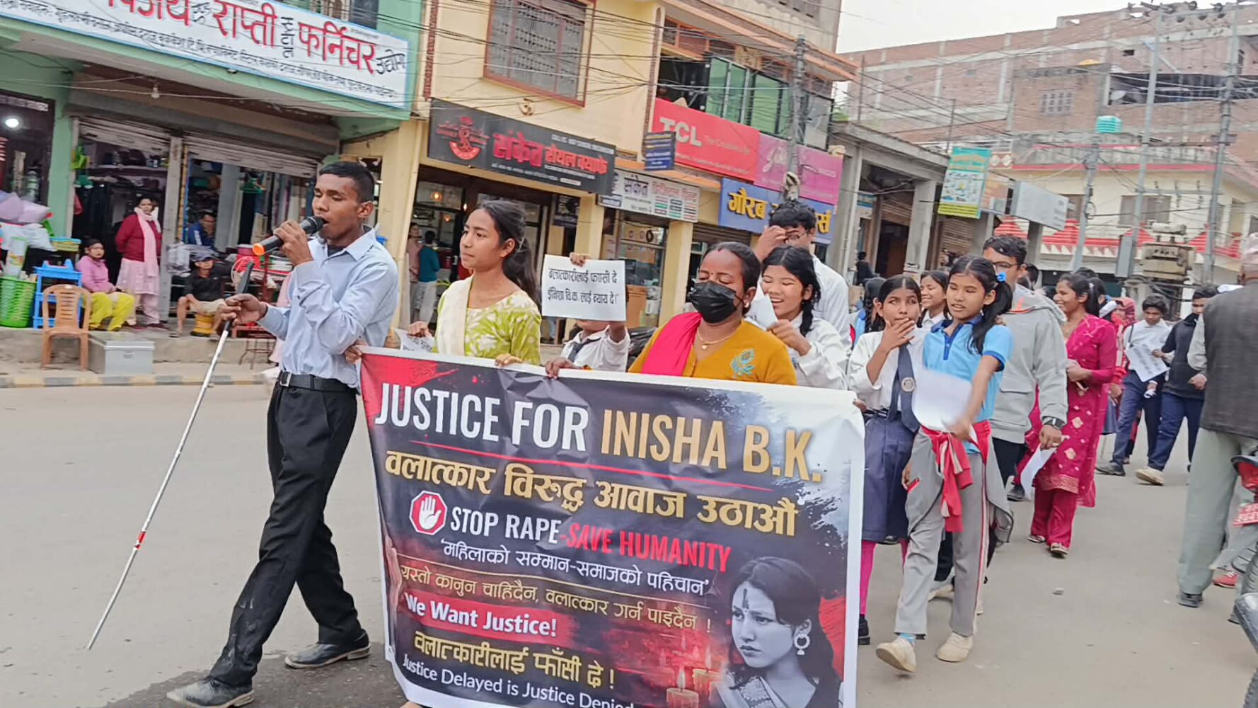 नेत्रहिन संघ दाङका उपाध्यक्ष आशा चौधरीले घटनामा संलग्न दोषिलाई कार्बाहीको मागसहित सडकमा उत्रिएको बताउनुभयो । उहाँले इनिसामात्रै नभई यसअघिका निर्मला , भागरथीका दोषिले पनि सजाय पाउनुपर्ने बताउनुभयो । यस्तै अर्का विद्यार्थी हुर्मत डाँगीले कुनै पनि अवस्थामा घटनाका दोषिले सजाय पाउनुपर्ने बताउनुभयो ।