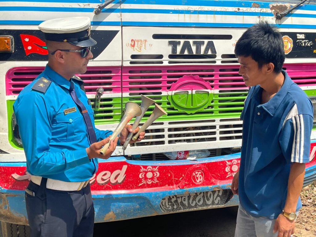 साथै अनावश्यक रूपमा जडान गरिएका फग लाइट, झल्लर, स्टीकर, मापदण्ड विपरीत फ्रन्ट गार्ड र ब्याक गार्ड तथा अन्य कानुन विपरीतका सामग्रीसमेत निकालिएको ट्राफिक प्रहरी कार्यलय प्यूठानका प्रमुख विष्णुप्रसाद न्यौपानेले जानकारी दिनुभयो ।